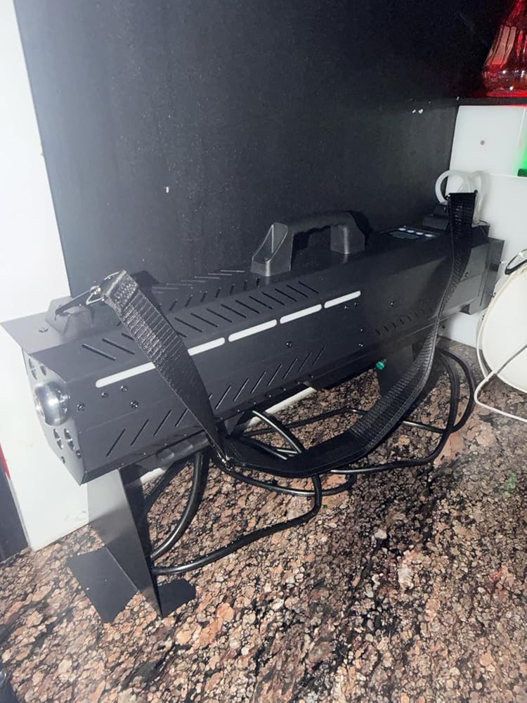Unleash massive 20ft fog plumes with this 1500W Handheld LED Fog Machine. Its unique cannon-shaped design offers ergonomic control. Operating on safe water-based fluid (no CO2 needed), it delivers 16,000 CFM output. Features dual lighting zones with RGB nozzle and body LEDs. Includes shoulder strap and floor stand.